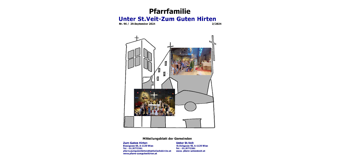 Unsere aktuelle Pfarrzeitung "Pfarrfamilie Unter St. Veit-Zum Guten Hirten" 1/2023 und ältere Ausgaben der Pfarrzeitungen und Pfarrblätter stehen hier zum Download bereit.
